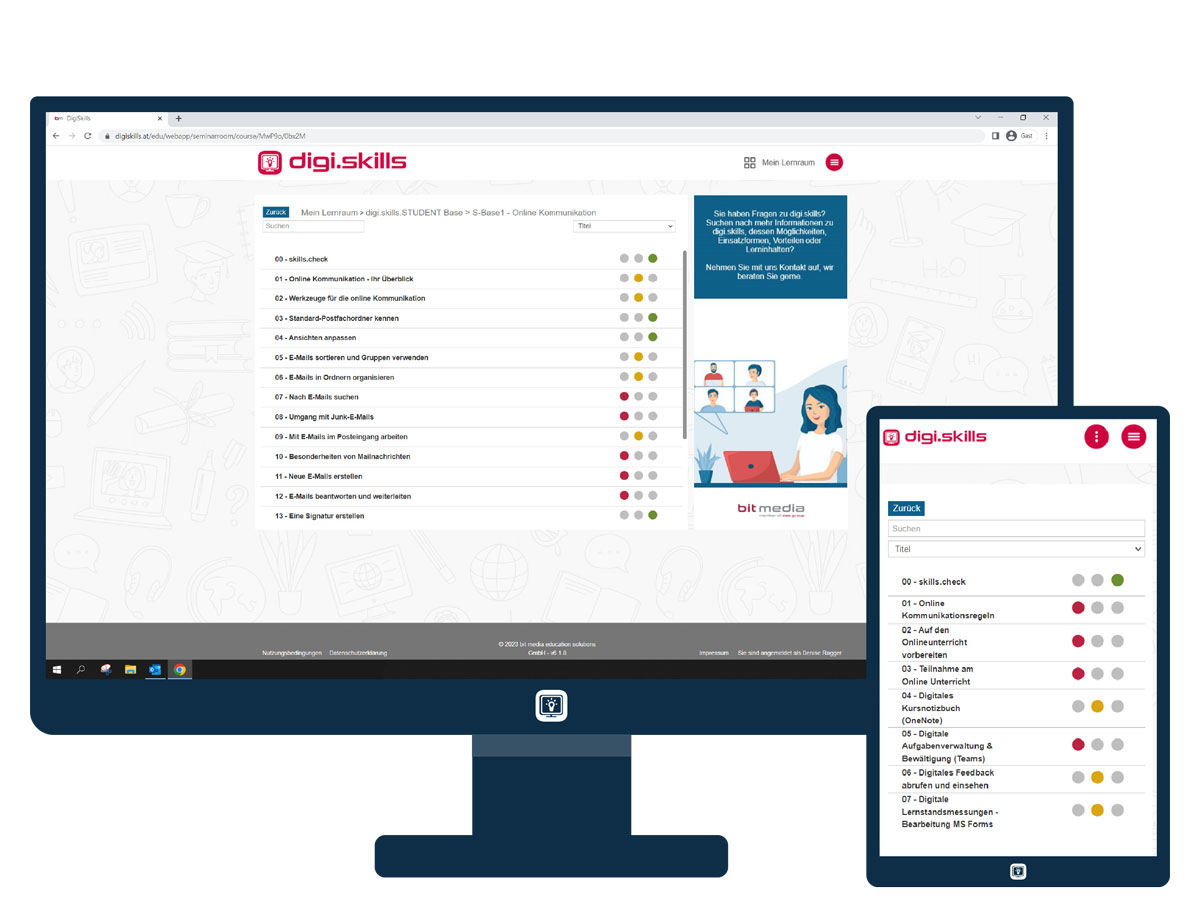 Der skills.check stellt alle Lernampeln aufgrund des Wissensstandes ein und diese passen sich dem Lernfortschritt an.